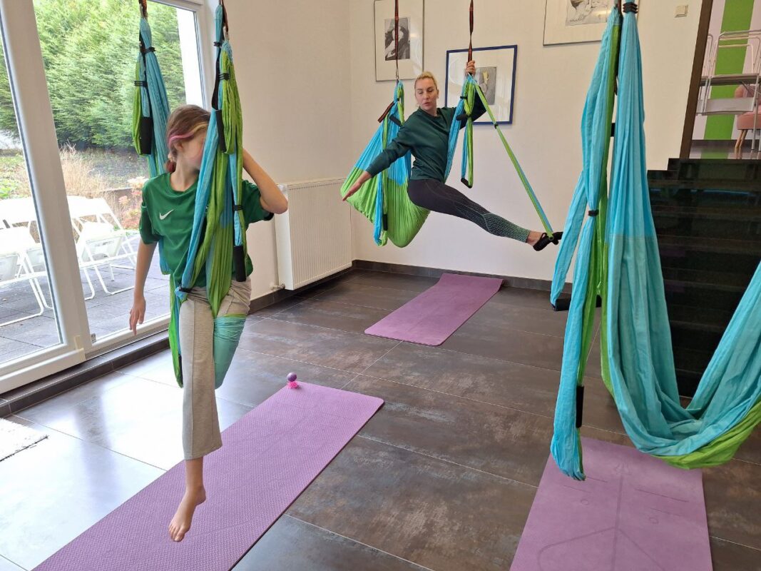 Family aerial yoga isn’t just a workout — it’s a real adventure where laughter, movement, and balance become a shared language for parents and children. Hammock sessions strengthen the body, build flexibility and confidence, and — most importantly — create trust and joy through shared experiences. Kids are thrilled to feel like they’re “flying,” while adults suddenly remember what it means to be light and carefree. And yes — when the whole family tries to strike the “flying superhero” pose in sync, the room fills not only with movement but also with laughter. These are exactly the moments you’ll look back on with a smile — as the happiest ones.